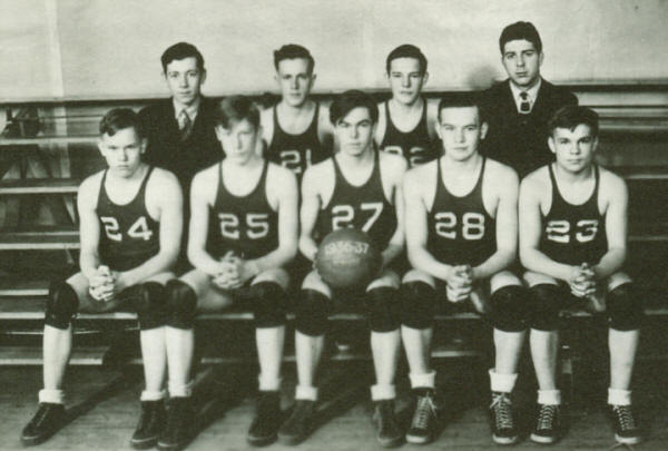 Forwards: H. Lyon, A. Krognoss, M. Mech. Center: K. Brown. Guards: