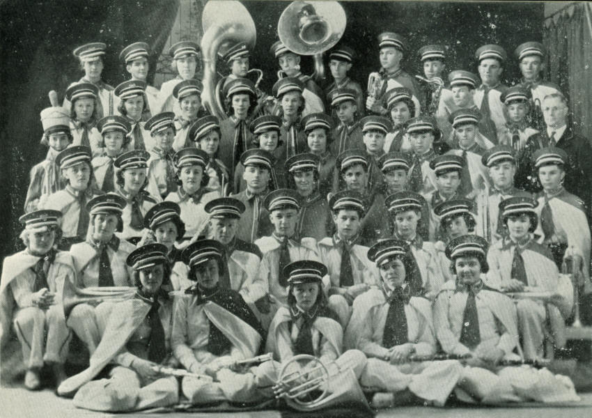 The Band Parents' Club drive for new uniforms was helped along by an appropriation.  As a result, the new uniforms were purchased as well as many new school band instruments costing approximately a thousand dollars.