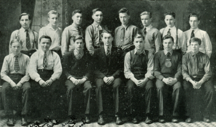 On Feb. 11, 1938 a reorganization meeting of the Greenwood Chapter of Future Farmers was held.  The officers of the year are as follows: Adviser, Mr. Heinze; President, David McKenna; Vice-President, Cletus Susa, Secretary, Edward Bayuk; Treasurer, Melvin Alperstett; Reporter, Clayton Braun; and Watch Dog, Robert Scheruring.