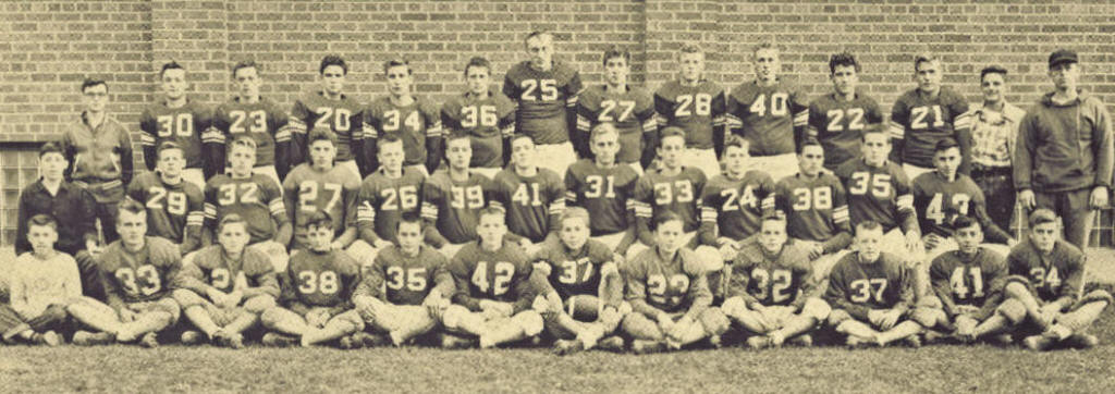 First Row: Arnold Smith, Manager; Carl Anderson, Norm Reineke, Gary Ruzic, Sam Johnson, Roger Boe, Fred Fredrickson, Frank Arch, Lenny Brzezinski, Marty Zickert, Mark Lesar, Norm Mayenschein. Second row: Lyle Christie, Manager; Jim Turnquist, Jeff Hoehne, Ron Hinker, Dale Johnson, Edwin Behrens, Tom Steele, Bob Timmler, Ted Martens, Arlyn Turnquist, Mike Lindner, Chuck Vesel, LaVerne Gregorich. Back row: Roy Bruch, Manager: Ron Ulesich, Jim Berrett, Jim Mast, Sylvester Champa, Herb Fabian, Jerry Anderegg, Roger Liebzeit, Jerry Kuester, Bill Maricle, Ed Maricle, Gary Brux, Coach Cy Buker. |