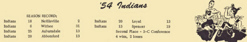 This nice photo on top of the 1954 Greenwood, Football Indians belonged to my brother, Ed Behrens of Great Falls, Virginia, and was sent with comments to Dr. Jerry Behrens of Casper, WY who graduated in 1959.