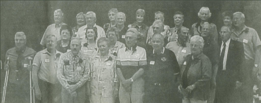 The Greenwood High School Class of 1956 held its 50-year reunion on May 27 with an afternoon social at Chelsee's Supper Club and dinner at the all-school alumni banquet. There were 30 class members attending. They were (front from left) Jim Zallar, Willard; Don Zage, Marshfield; Dick Baughman, Colorado Springs, Colo; Loraine (Timmler) Lindner, Loyal; Ralph Smrecek, Greenwood; Tony Trunkel, Willard; Margie (Hollman) Gregorich, Big Thunder, Mont.; (second row) Marie (Polzin) Moore, Amery; Janice (Colby) Zimmer, Greenwood; Violet (Franz) Metzke, Land O' Lakes; Arlene (Noah) Stark (hidden in picture), Neillsville; Alice (Yunker) Nolan, Wisconsin Rapids; Reynold Lindner, Edgar; Jim Turnquist, Greenwood; Tom Steifvater, South Padre Island, Texas; (third row) Leland Mayenschein, Thorp; Nancy (Trost) Malizon, Cicero, Ill; Gary Rohde, River Falls; Ruth (Kuehl) Cornwell, Ripon; Dale Johnson, Eau Claire; Sharon (Kesler) Sandblom, Tucson, Ariz.; Sharon (McConnell)Mayenschein, Milwaukee; Carolyn (Koci) Kohinhofer, Greenwood; Shirley (Lindner) Janezich, Willard; Kathleen (Hagen) Turner, Neillsville; and James Mast, Glendale Heights, Ill. Those attending who were not pictured were Eldoa (Severson) Vollrath, Willard; Phylis (Grum) Goeke, Greenwood; Jesse Hagen, Willard; and Nancy Wetzel, Greenwood.