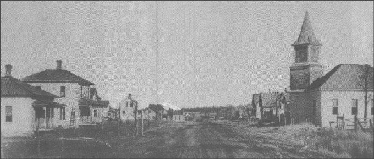 Granton (early 1900s), Clark County, Wisconsin. The Methodist Church can be seen to the far right.