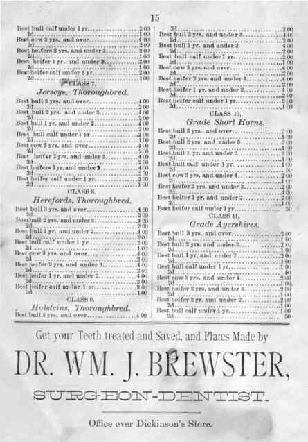 From page 1 5 of theList of Premiums and Rules and Regulations of the Clark County Agricultural Society, for the Fair of 1887. Web page by James W. Sternitzky PhD, June 29, 2007.Return to Index for the 1887 Fair.
