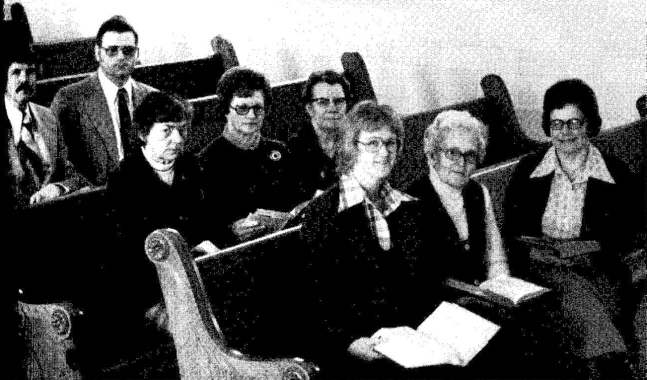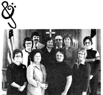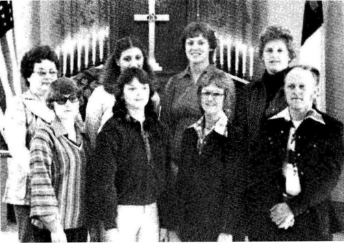 Row One, L to R: Mrs. Harley Hardrath, Trustee - Mr. Rolland Knecht, Financial Secretary - Mrs. Wilbert Miller, President - Mrs. Hubert Koffarnus, Treasurer - Mrs. Richard (Margo) Seefluth, Secretary - Mrs. Richard Hamann, Elder.