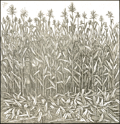 Excellent Yeilds in Clark County, Wisconsin The cut to the right is a view of Mr. Austin's cornfield. It is not an imaginary picture. The cut was made from a photographic view. It is a striking illustration of what the soil will do in the way of producing corn or other food. (We are under obligations to Messrs. Cornish, Curtiss & Greene, manufacturers of churns, and other dairy apparatus, at F. Atkinson, Wis., for the use of this cut. ("Clark County Illustrated" by Saterlee, Tifft & Marsh-1890) |