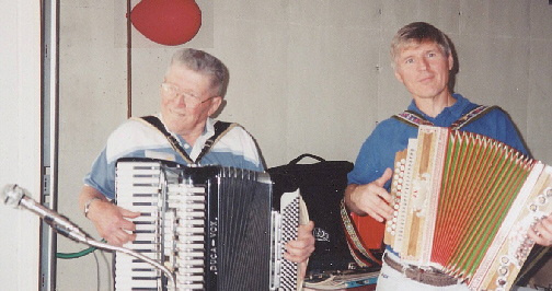 Frank Pakiz plays for most of the nursing homes in Clark County. He's been doing this for years. He plays for the annual Slovenska Druzba picnics in July. All his family plays an instrument. The Pakiz's both grew up in Willard, Wisconsin and now reside in Greenwood. Both Frank and Dave Pakiz are pictured above. Dave is a pilot for American Airlines and lives in Crystal Lake, IL.
