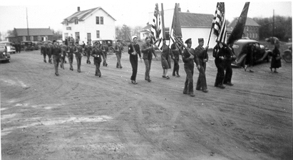 Veteran's parade passing Mary's Store and Post Office |