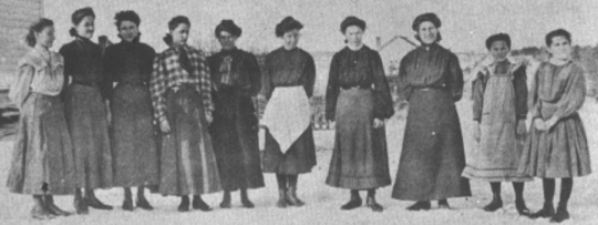 Girls - Emma Moser, Ida Schulz, Bertha Sollberger, Augusta Martens, Ethel Varney, Jennie Winton, Mary Horak, Hazel Achenbach, Josie Horak, and Vivian Achenbach