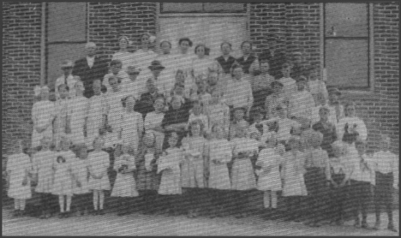 In 1900, the school building became too small as there were about 85 pupils. A four room school was built ( the building in the photo above) with two rooms on the main floor being used for up to grade eight. It was thought that as Columbia grew in population the upstairs would be used for a high school. The upper floor was used as an auditorium as it had a stage. Many home talent plays were given there.