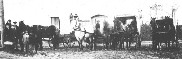 lined up in from of Schlender’s store in 1908. Rigs were driven by: