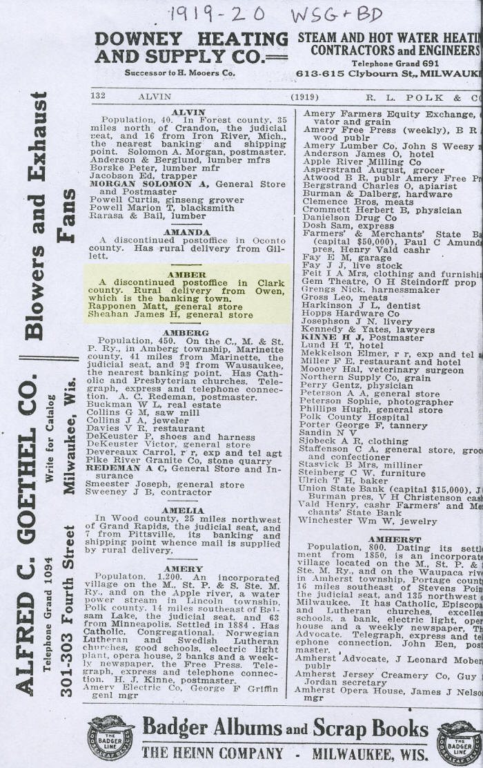 This 1919 - 1920  Business Directory with the Community of Amber/Clark highlighted