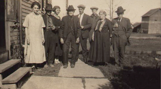 Pictured below is are some family members of William F. and Bertha (Spiegler) Schultz in front of their residence in Owen, Wisconsin. Aggie Schultz on the left, Wm Schultz, Aggie's father, in the front middle.