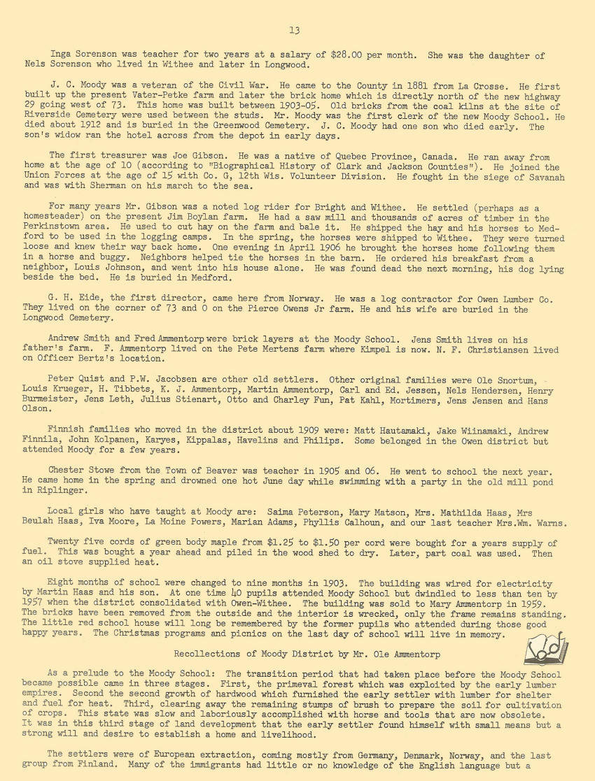 Local girls who have taught at Moody are: Saima Peterson, Mary Matson, Mrs.