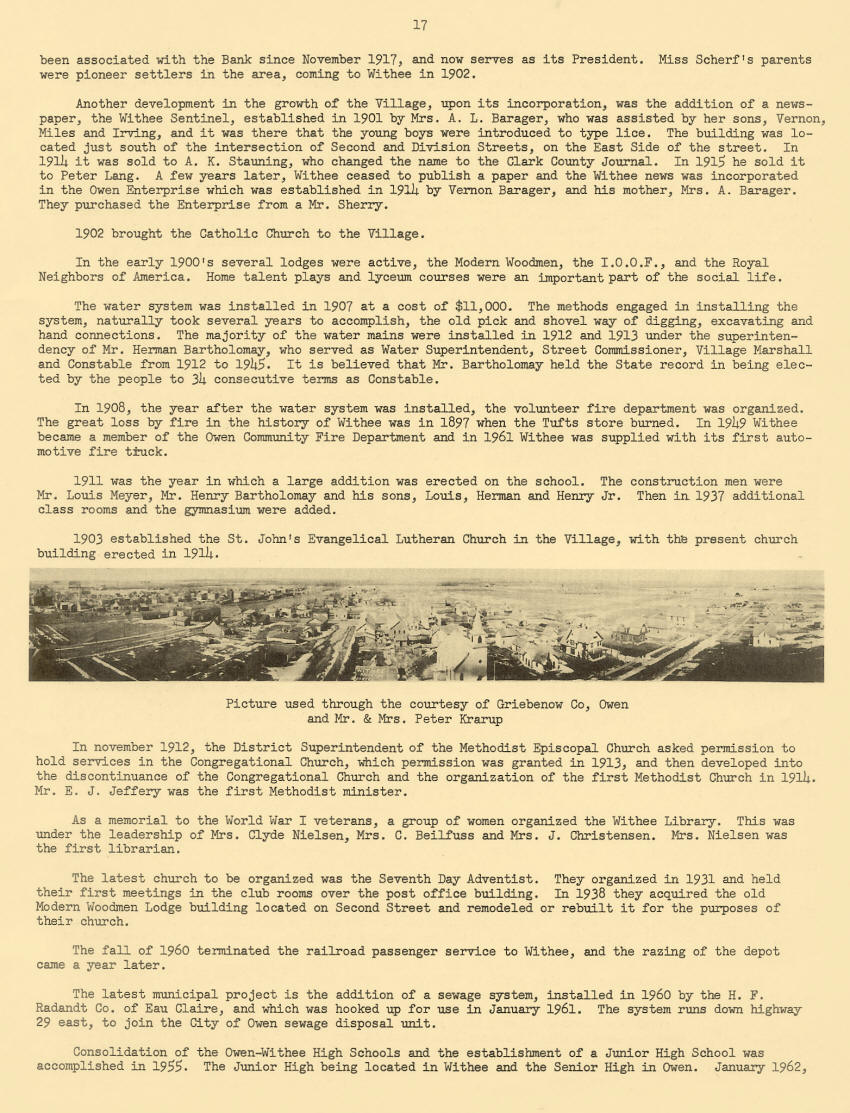 1897 when the Tufts store burned. In l949 Withee became a member of the Owen