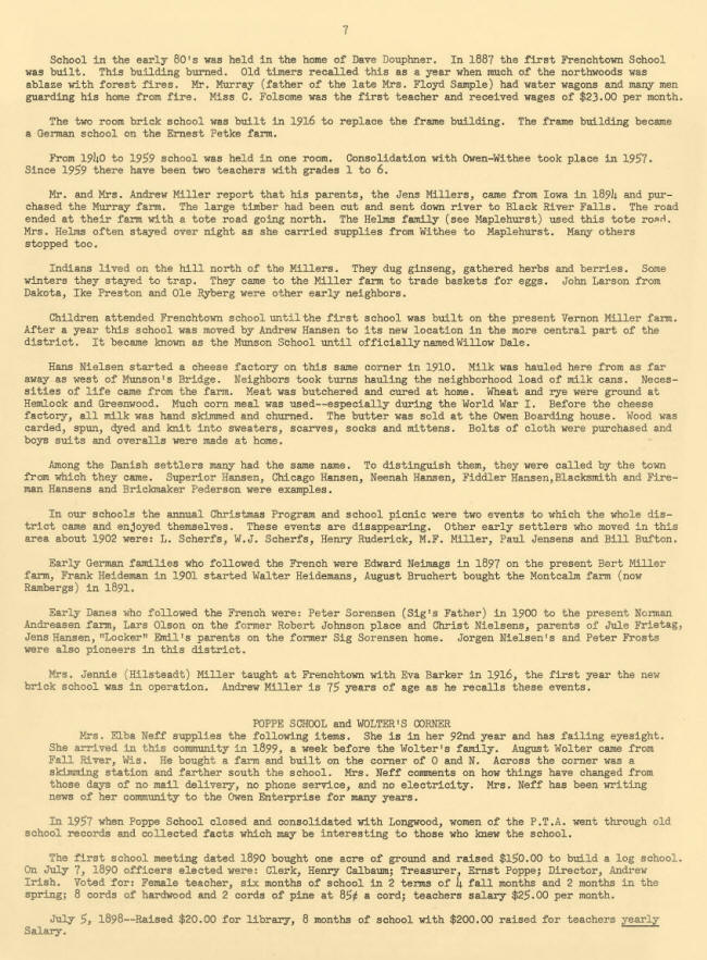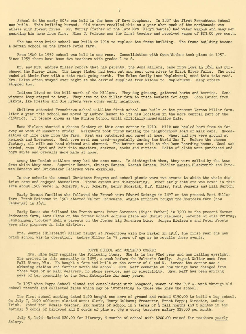 From l910 to 1959 school was held in one room. Consolidation with Owen-Withee