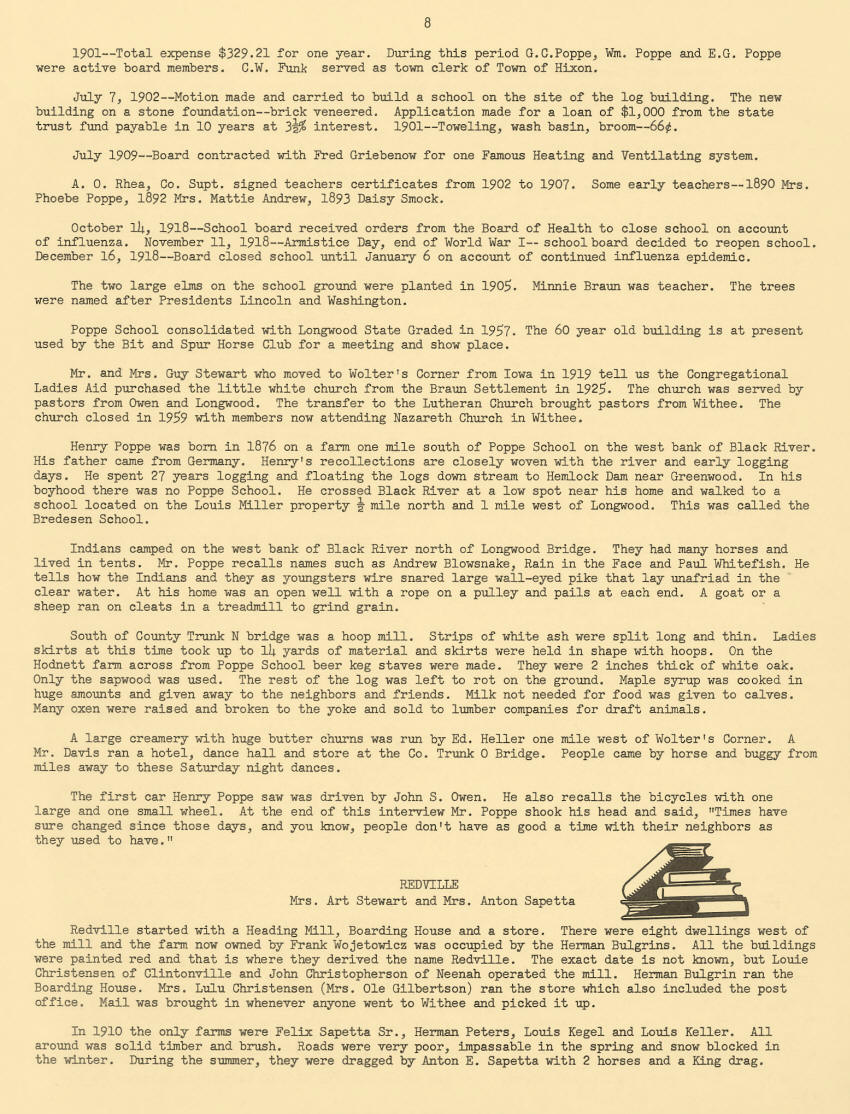 were active board members. C.W. Funk served as town clerk of Town of Hixon.