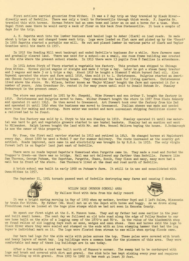 shipped to Chicago from Withee. Horses pulled wagons or sleighs and made 2 trips