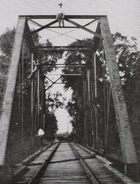 The Fairchild & Northeastern train bridge once spanned the Popple River on the south side of Owen.