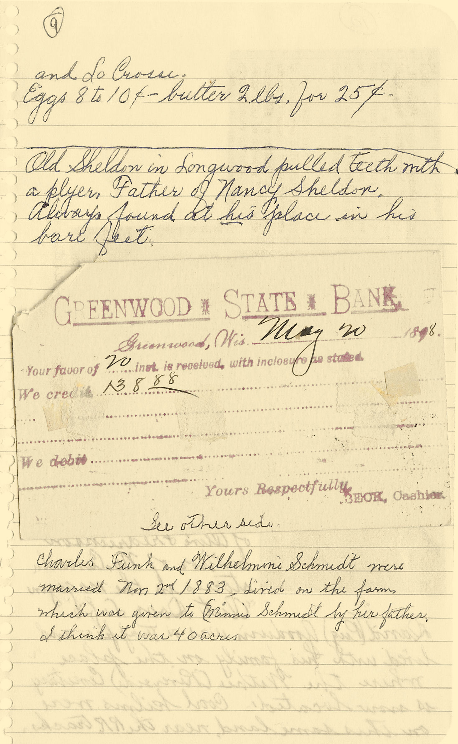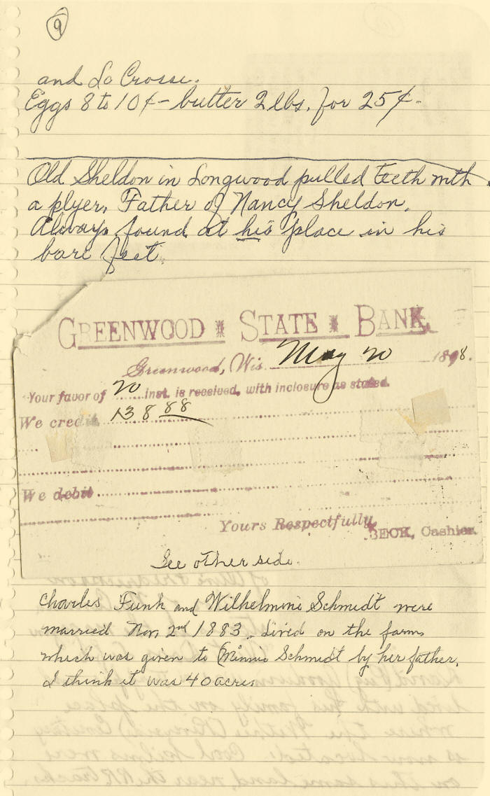 Charles Funk and Wilhelmina Schmidt were married November 2, 1883.  Lived on the farm which was given to (Minnie) Schmidt by her father.  I think it was 40 acres.