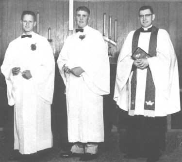 Confirmation Class 1959: G. Laabs, D. Krueger, Rev. Wihelm