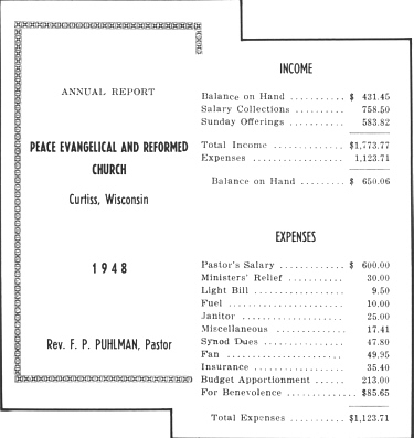 In 1925 the Curtiss congregation voted to pay $350.00 as their share of the pastor's salary. The next year it was increased to $400.00. The organist and the janitor were each to receive $10.00 per year.