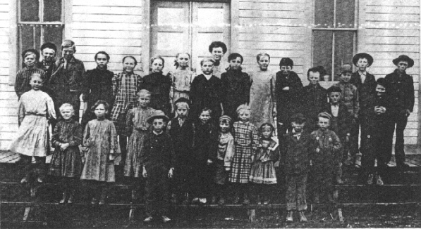 Midway School 1909--NW of Curtiss, (front row) Hannah Borgemoen, Clara Wilhide, Martha Gilbertson, Mae Wilhide, Rudy Kopp, Lawrence Peterson, Howard Jacobson, Donald Jacobson, Marie Borgemoen, Pearl Knight, Adolph Gilbertson, Harry Kopp, (back row) Thorwald Becken, Cornel Erickson, Harry Bottrud, Florena Hanson, Ellen Anderson, Elsie Kopp, Ruth Nelson, Alma Bottrud, Erma Kopp, Agness Bottrud, Ken Jacobson, Joe Hiebsh, Oscar Hiebsch, Clarence Wilhide, Olaf Borgemoen, Ced Jacobson, Elmer Schmidt. |