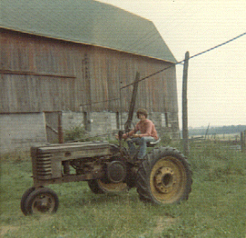 147 Dean Hardrath on Harold's John Deere, Oct. 1973. Herman Hardrath traded 3 horses for this tractor! |