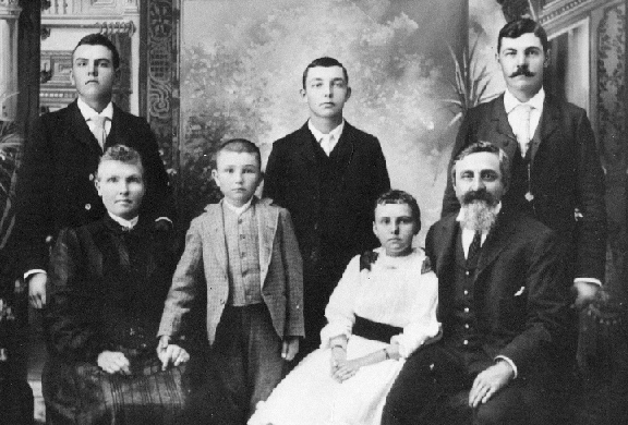 (Picture taken circa 1888) Front Row: Mary Frances Cushing, George Dennis, Anolia Mary, and Gabriel Adolphus Back Row (standing) Frederick "Fred,"Joshua, Moses Louis, and William "Frank" Franklin |