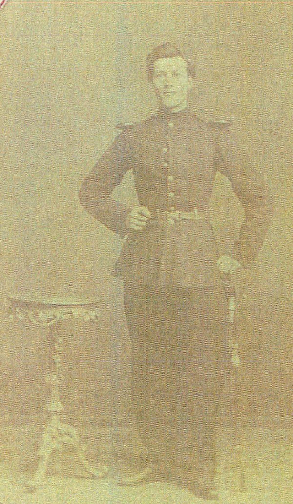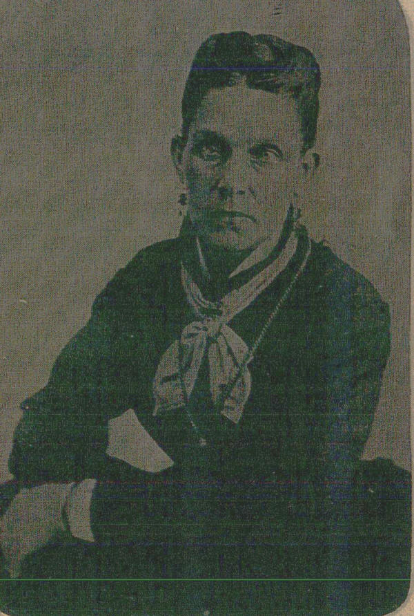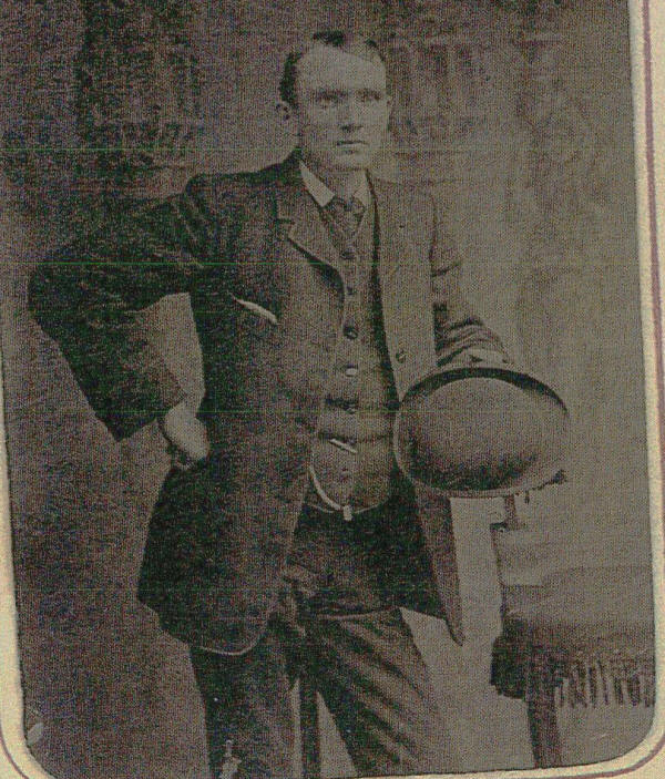 Thomas F. Burge on the right. Lady on left is his cousin – either Allie or Sylvina Christie