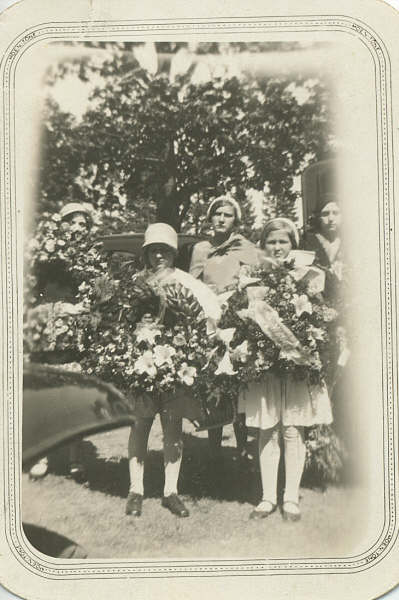 This is a picture of my mother , Ruth Beilke with her sister Vera  and cousin at her grandfather's funeral as flower girls.  When she mentioned they   were flower girls at a funeral I thought she must have been mistaken but in an obituary I did learn that there were flower girls at funerals.  This was at Gustave Beilke's funeral.  Mom is the one in front on the left.