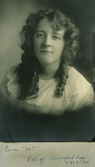 #103 Submitted by Lynda Clark From an album once owned by Ellen (Olson) Johnson of Neillsville, WI. Both she and Eva graduated in 1921. Eva was apparently a graduate of Abbotsford, WI. Ellen had moved to Neillsville in 1914. Identified as Eva J. McKean |
