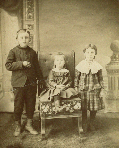#36 Submitted by Thorp Museum This early post card was found in a collection once owned by Shirley Asselin of Racine, WI and on the back was written, "Elmendorf Family". It is embossed with the "Brintnall Studio" logo. |