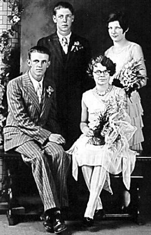 They were able to acquire 2 cows and dad built a shed for them. They cut marsh grass and stacked it around the shed for the cows for winter. All water had to be hand carried from a spring, which was in the woods about a half mile away. They would lead the cows to that spring two times a day to drink, and carry back water for the house. Mom would use water very sparingly, she would wash clothes or dishes , then she would scrub the floors, which were only 12 inch wide boards, after she finished that she would water the garden with the water, as soon as it was cool enough. In the winter they had to chop through ice to get water and that too was used to water house plants after it was well used.