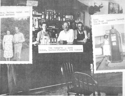 From Left to right: Mrs. Walter Wucki and son Bernard; The Wucki’s in 1940-Helen, Walter (father) and Robert; The Four Corners Tavern in 1942 with Helen Wucki by gas pump.