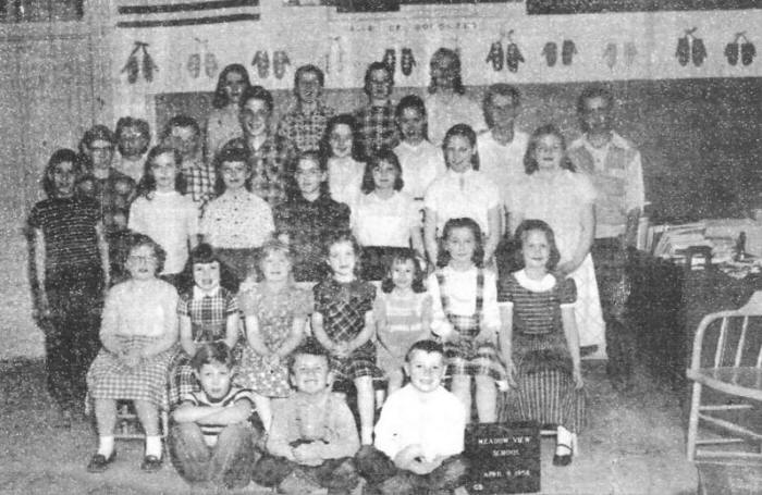 Back Row one, left to right: Mrs. Arthur (Lillian Ehlers) Meyer (teacher), Thomas Zschernitz, Larry Zschernitz, Patsy Honzik