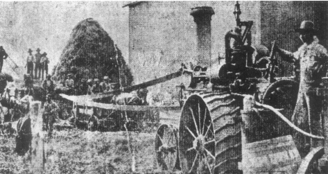 I have no dates for this picture, nor do I know where it was taken, but it shows how grain was threshed grain years ago. |