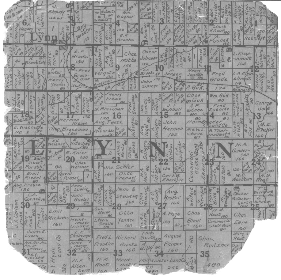 (noted by a number in the section listed on the actual 1915 Plat Map)