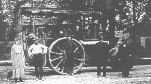 In the next photo Mr. Kunze is standing on the roller which is headed north on Loyal's main street.  Mr. Ross is standing on the right in the picture, again with two unidentified man.