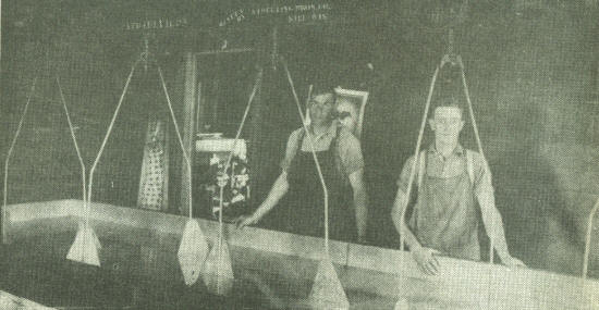 Gus Voigt and brother-in-law, Ernest Fisher at the Spokeville Cheese Factory: Voigt later worked as a cheese maker at the Pelsdorf Cheese Factory (later Schlinsog’s) and Catlin Corner’s Cheese Factory. Two of his brothers, Adolph and Carl, were also licensed cheese makers. Adolph owned and operated the Globe Factory on County “G”, now the building of Hoppa’s Corner Bar; the Day Corners Factory, south of Neillsville on Hwy 95 and now Jeff’s Roadside; the Star Factory, now Lynn Cheese Factory. |