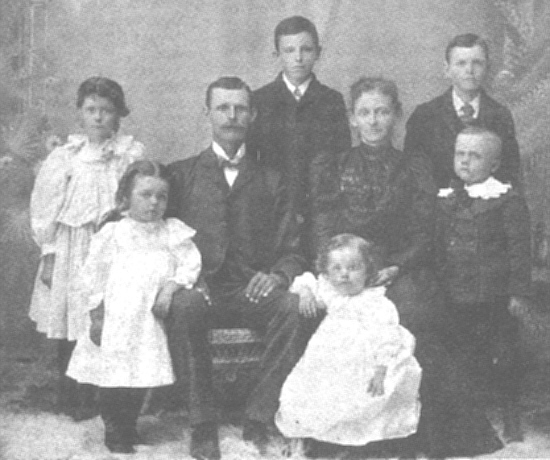 The Theodore Emling family moved to Abbotsford from a farm in the Spencer territory in 1916. Theo. Emling and Al Strebe bought the Overland garage from A .J. Young in 1919 and operated the business under the name of Emling & Strebe. The garage burned down in 1926 and the partnership was dissolved. Members of the Emling family were Harry, Charles, Fred, Sadie, Addie, Ned, Laura, Eva, Eda and Irene. Mame Emling, wife of Harry Emling, is still a resident of Abbotsford. Laura lives in Angola, Indiana, and Charles lives in Stanley.