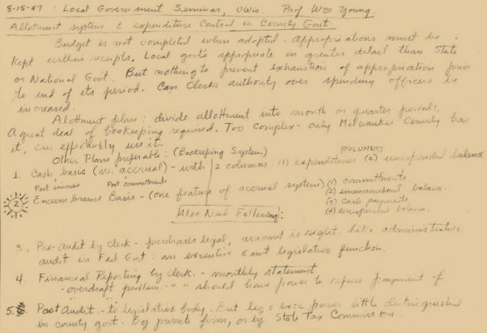 8-15-47 – Local Government Seminar, U-Wis. Prof. Wm. Young