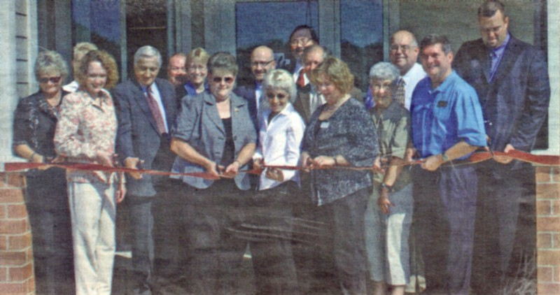 Neillsville Mayor Diane Murphy cuts the ribbon to the Marshfield Clinic Neillsville Dental Center alongside many of those involved in bringing the dental center to Neillsville during a celebration and dedication held Friday, Sept. 11, 2009. The dental center opened for patient care Aug. 10, 2009. (Photos by Peter Spicer/Clark County Press)