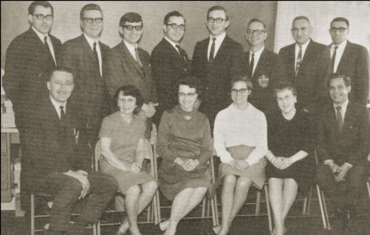 Seated: Wayne Grap, Sales Mgr., & Secretary, Ruth Dern, Vera Meinhardt, Sales, Adel Anderson, Receptionist, Irma Coates, Home Service Consultant, Howie Strutz II, President & General Manager.