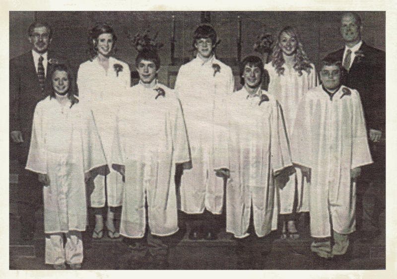 St. John’s Lutheran Church, Neillsville, confirmed seven young people Sunday, May 11, (2008). Each confirmand was assigned a topic and presented a speech to the congregation dealing with “Why is it important for me to belong to an Evangelical Lutheran Church?” They also confessed their faith and were given communion for the first time. Pictured are: (front row, from left) Alyssa Anding, Damien Luchterhand, Joshua Anason, Matthew Heiman, (back, from left) Pastor Biebert, Sierra Coulthard, Taylor Murphy, Emilie Smith and Principal William Tomlin. (Contributed photo)