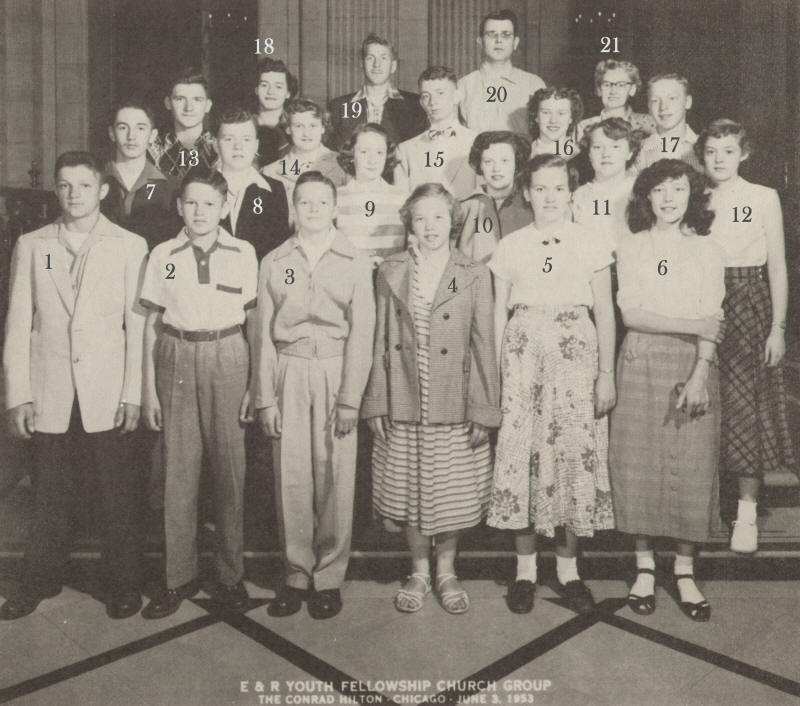 An important factor in the success of a youth organization is the attitude and help of the parents and adult members of the congregation. We owe gratitude to Mrs. Richard Albrecht for her work with the Youth Fellowship during the months when we were without a minister between the leaving of Rev. Dechant and the arrival of Rev. Koehler.