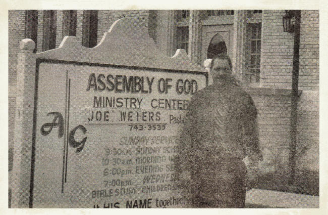 Pastor Joe Weiers poses next to the Neillsville Assembly of God sign, which will soon be replaced and feature the church’s new name – Hillside Community Church.