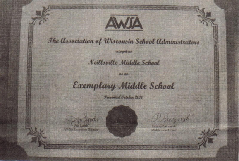 Student academic achievement at 78 middle schools, including Neillsville and Colby middle schools, earned Exemplary Middle School honors in a program sponsored by the Association of Wisconsin School Administrators (AWSA) and Department of Public Instruction (DPI) to recognize schools that set and met high standards.