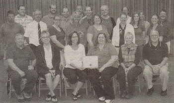 Neillsville Middle School staff members pose with the Association of Wisconsin School Administrators Exemplary Middle School certificate. Neillsville was one of 78 state middle schools to recently be honored with the award.