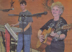 Iris Bemis (right) and her grandson Trevor Bemis have been entertaining the residents of Neillsville Care & Rehab with their musical talent for 12 years. Trevor was nine years old when he first performed for the residents. Below Bonnie Elmhorst (left) and her mother Josephine Strangfeld are enjoying the music of Iris and Trevor Bemis. (Contributed photos)